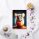 Cute small mouse with shiny apple kitchen art foil holiday card
