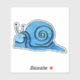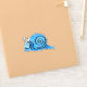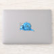 This vinyl sticker is a cute cartoon snail with a smile on his face having a blue patterned shell and head.