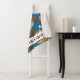 This blue baby blanket features a collage of a smiling dog with big ears and dog bones on a dark blue background. Personalize this adorable blanket with your child's name.