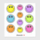 These stickers feature emoji faces in pink, orange, yellow, green blue and purple with different coloured eyes and big happy smiles.