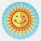 Cute Smiling Sun Yellow Orange Blue Classic Round Sticker