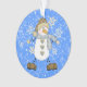 C'est un joli ornement de vacances coloré, et les enfants vont adorer! Il présente une image de bonhomme de neige en caricature marron, bleu et blanc avec un foulard et un chapeau de Père Noël, et des boutons en forme de coeur. Derrière lui se trouve un flocon de neige rempli d'un joli ciel bleu. L'autre côté a le même arrière - plan de flocon de neige avec votre texte customisé dans 3 champs. Cela fait un beau cadeau de gardien pour un fils, une fille ou un petit-enfant. *Merci à Real Deal Clipart pour le client utilisé pour créer cette conception. http://realdealclipart.com *