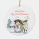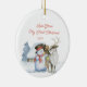 Cute Snowman and Reindeer 1st Christmas Ceramic Ornament
