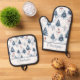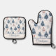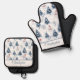 Cute Snowman And Snowy Trees Merry Christmas Oven Mitt & Pot Holder Set