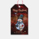 Beautifully crafted Gift tag on a burgundy-red background featuring a snowman, child and a bird. This gift tag is customizable by changing the Holiday Greeting and the Family name. Enhance your Christmas Gifts.