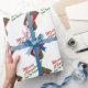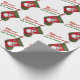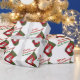 This sweet custom Christmas wrapping paper features a photograph of a red and green stocking with an adorable snowman dressed with a seasonal plaid scarf and hat set over a white background. Fill in the template field with your name, remove that text or clickCustomize to select a font style, size and colour you like. You can clear the red Merry Christmas text added to the background then click Customize to add text you prefer