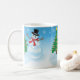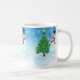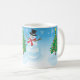Cute snowman with snowflakes and decorated Christmas tree is so festive for the holidays.