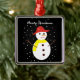 Cute snowman custom Christmas ornament featuring an adorable snowman with red hat, yellow scarf, button eyes and sticks.
