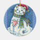 CUTE SNOWMAN KITTEN, SNOWFLAKES CAT AND MOUSE CERAMIC ORNAMENT