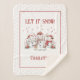 A Child's Cute Snowman Let It Snow Blanket With Their Name. Put a smile on someone's face with this cute Snowman Blanket designed with a group of three snowmen dressed in bright festive colours of red and green, surrounded with falling snow and their first name. The text includes: Merry Christmas and a Name. To personalize, simply insert your text into our easy template, replacing the sample. Makes a great gift for children.