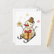 A cute snowman carrying a gift and a letter on a sled. This makes a funny winter gift for everyone, who loves snowmen, Christmas, and winter.