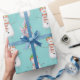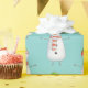 NewParkLane - Christmas Wrapping Paper, with a cute cartoon snowman in watercolor against an aqua blue background.
