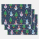 This is cute white Snowmen pattern in blue, red and pink with colourful Christmas trees and little snowflakes on dark blue background. It's great party supply for Christmas and holidays season