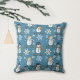 Cute Snowman Snowflake Pattern on Blue Throw Pillow