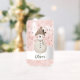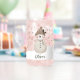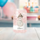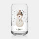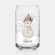 Cute Snowman Snowflakes Kids Name Can Glass. A cozy, Boho-inspired Christmas can glass featuring a cute snowman, with soft earthy tones such as terracotta, cream, and green. Delicate snowflakes are scattered across the glass, adding a touch of winter magic. The overall aesthetic exudes a warm, rustic, and modern Bohemian feel, perfect for a stylish yet festive holiday look.