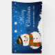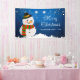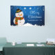 Cute Christmas banner features an adorable snowman on a snowy night background. Personalize it with your name.