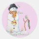 Cute snowman with Christmas stocking in the snow Classic Round Sticker