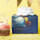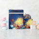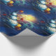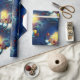 Wrap your holiday gifts with this Christmas wrapping paper featuring cute snowman with gifts and firework on blue background. Your presents will look extra jolly under the tree.