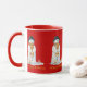 The snowman on this original mug is wearing his best black hat and he has his red and green stripy Christmas stocking tied to a twig in the snow. You can customize this fun christmas mug with your own text. The original cute Christmas illustration is painted in watercolor and is titled “Santa’s Coming.”