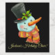 Cute Snowman with Top Hat Custom Christmas Wine Label