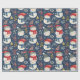 Cute Snowmen Greenery Snowflakes Blue Christmas Wrapping Paper