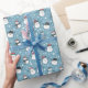Add a cheerful touch to your holiday gifts with this adorable blue Christmas wrapping paper. The bright blue background sets the stage for a fun and modern pattern featuring playful snowmen and intricate snowflakes. This lively design perfectly captures the joy and magic of the winter season.