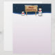 Winterly graphic illustration featuring two cute snowmen holding a wooden sign with Christmas greeting in a snowy environment.