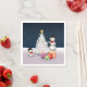 Winterly and festive graphic illustration featuring two cute snowmen decorating the Christmas tree with candy canes, christmas lights and a star tree topper.