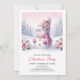 Cute Snowy Forest Pink Snowman Kids Invite Digital