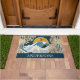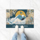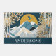 Beautiful artistic custom name door mat with a cute winter hummingbird scene.