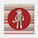 Cute Sock Monkey on Red Circle Red Brown Stripes.