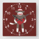 Cute Sock Monkey with Hat Holding Heart Square Wall Clock