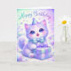 Send a dose of magic with this adorable kitten birthday card. Featuring a fluffy white cat with a party hat and gift box against a shimmering pastel galaxy background, this whimsical card is perfect for young girls, cat lovers, and anyone who loves a bit of sparkle.