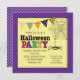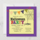 This Halloween Party invitation features a cute theme with spider web and spider accented with bright coloured patterned flag across the top. Customizable text allows you to add your party details. The design is appropriate for a children's Halloween party.