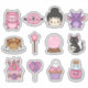 Add a fun and slightly spooky touch to your notebooks and planners with this collection of light pink and purple designs. The sticker sheet features a variety of adorable, slightly creepy characters like a fluffy pink monster, a smiling black cat holding a skull, and a friendly little dragon. You will also find magical items like a glowing crystal ball, a star wand, and a pink potion bottle, alongside sweet snacks like ghost-topped cupcakes and syrup-covered pancakes. The soft colours and friendly faces make these stickers perfect for anyone who loves a cute take on traditional spooky themes.