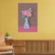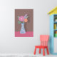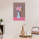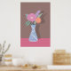 A cute bouquet of modern spring florals in a vase, featuring a colour palette of pink, brown, orange, green, purple and blue.