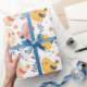 Cute Spring Chicks and Floral Pattern Wrapping Paper