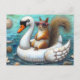 AI generated art of an adorable squirrel on a swan inflatable flotation device
