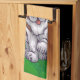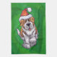 Cute St. Bernard in Santa Hat on Green Kitchen Towel
