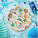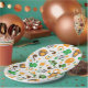 Paper plates with a cute repeating pattern with a bunch of St. Patrick's Day themed images. Green leprechaun boots and hat, a pipe, beer, horsehoes,