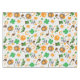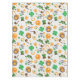A tablecloth with a cute repeating pattern with a bunch of St. Patrick's Day themed images. Green leprechaun boots and hat, a pipe, beer, horsehoes,
