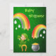 Cute St.Patrick's Day neutral green Baby Shower invites for boys or girls with an adorable baby leprechaun elf sitting on a lucky horseshoe holding a shamrock under a pretty colourful rainbow and raindrops. There is another rainbow and raindrops next to him and underneath it is a pot of Irish gold. The beautiful green background has elegant swirls and flourishes and lucky four leaf shamrocks / clovers. These fun stylish invites are decorated both sides. Text, font and colour of font are all customizable. If you need assistance customizing your product please contact me through my store and I will be happy to help.