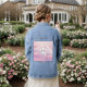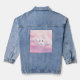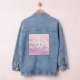 C'est une veste Denim Star Ciel Nuageux. Le design se trouve à l'arrière d'une veste pour femmes en denim bleu. Le design de l'étoile mignonne a été fait avec de l'art génératif. L'art présente une étoile blanche mignonne sur un arrière - plan rose et lavande ciel. Le design rose mignon est sur une veste en denim. Vous pouvez acheter la veste denim avec 4 paiements sans intérêt avec Klarna.