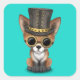 This unique design features a baby Fox with a steampunk top hat and goggles. The cute little cat is looking forward with its head slightly tilted giving it a curious look. The over sized head and small body along with the details in the fur and steampunk accessories create a beautiful combination of a cartoon and realistic look The brass and leather accents in the hat and goggles gives this adorable design a steampunk look
