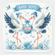 Cute Storks Carrying Twin Baby Boys Square Sticker