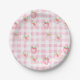 Cute Strawberry Berry Pink Gingham Brithday Paper Plate