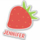 NewParkLane - Personalized Custom-cut Kids Stickers with a cute strawberry cartoon, and a text template for your name or other personal text in red.