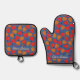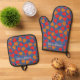 Cute Strawberry Floral Red Orange Blue Oven Mitt & Pot Holder Set