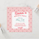 Square with an elegant strawberry theme. Includes a lace detail, handwritten fonts, and a ribbon bow. Has a tea party or picnic vibe. Great for a girl's or young adult birthday, Galentine's Day, Valentine's Day, girlfriend get-together, or even a baby shower. A strawberry palette of ruby red, a pastel pink / blush pink, muted mint green / sage, and tablecloth white.