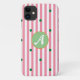 Cute stripes pattern monogrammed pink green dots initial iphone 11 case for her.
